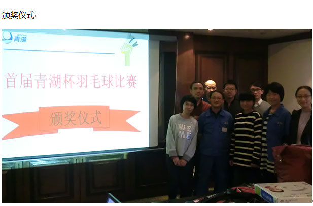 為豐富員工業(yè)余文化生活,增進(jìn)員工之間的交流,給來自不同部門的同事搭建八小時之外的良好溝通平臺,促進(jìn)“和諧青湖、健康青湖、快樂青湖”建設(shè),2014年11月9日公司在雅戈爾體育館組織了首屆“青湖杯“羽毛球比賽。本著“我運動、我健康、我快樂”的目的,來自PMC部、質(zhì)量部、IT部、客服部、人事部等員工踴躍報名參與,攜手并肩向快樂出發(fā)。